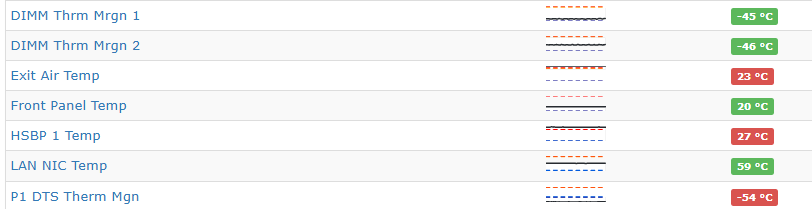 A final example is “Exit Air Temp” of a server, current value is 24C which is perfectly normal, but the high and low limits are suddenly +10C for the high limit and -66C for the low limit!