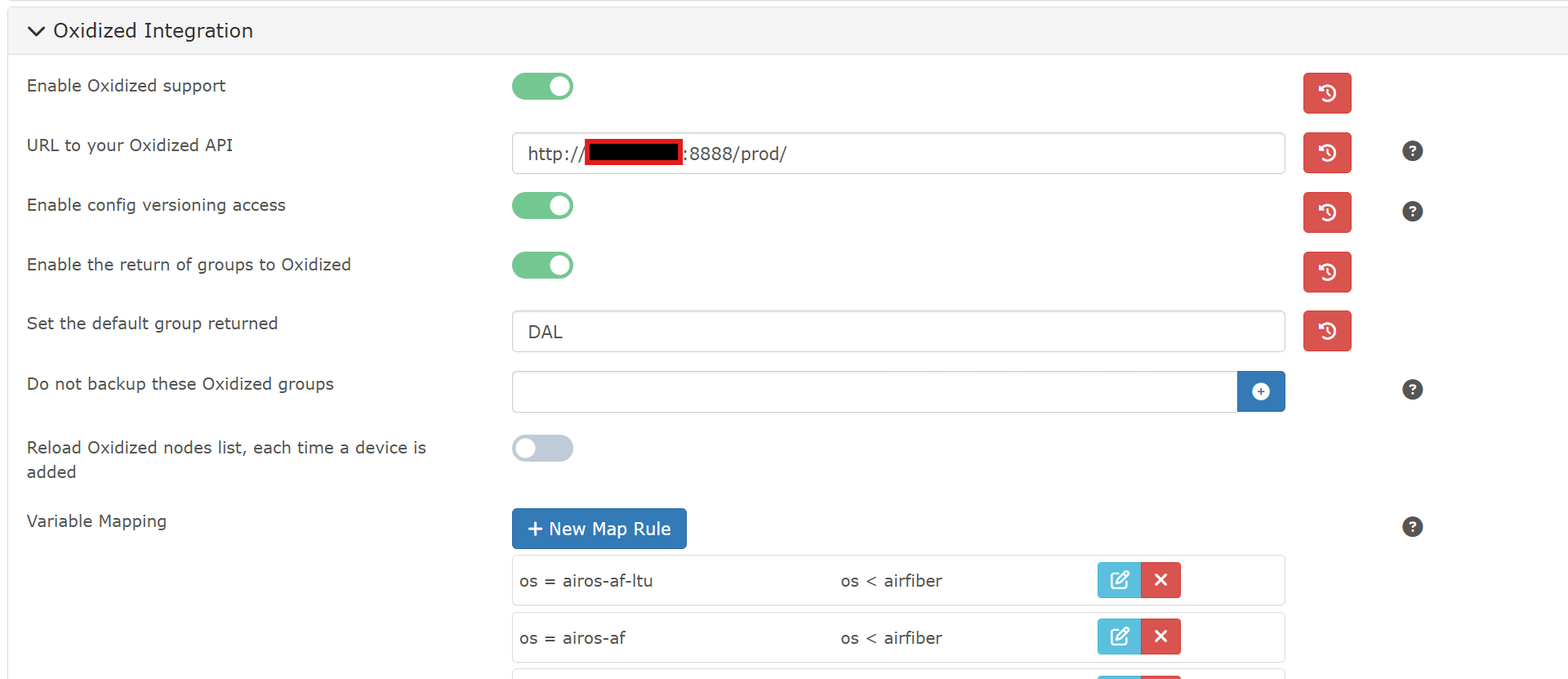 Oxidized has support for feeding devices into it via an API call, support for Oxidized has been added to the LibreNMS API. A sample config for Oxidized is provided below.