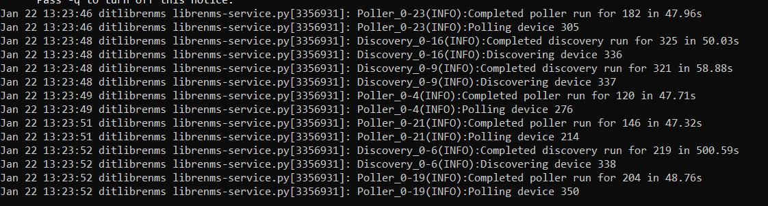 Checked librenms.service found poller, discovery, alert and service working normally.