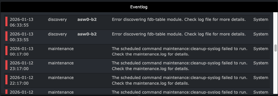 maintenance The scheduled command maintenance:cleanup-syslog failed to run. Check the maintenance.log for details.