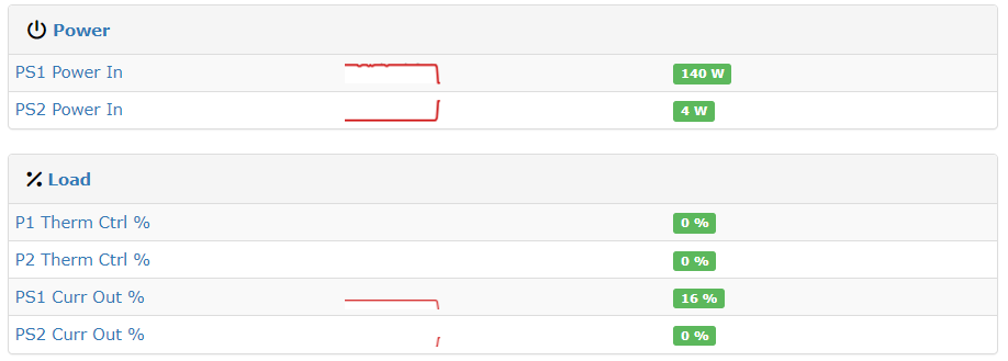 Looking for a Power in figure of zero for an alert is not workable as most of the servers seem to operate the PSU’s in hot standby mode rather than load balancing. So one power supply supplies the full load for about a day, with the other showing zero watts then they swap and so on.