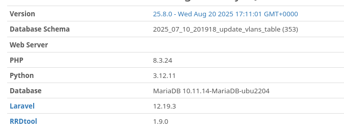 There might be some other workarounds (like configuring strict mode to allow loose GROUP BY), but the most straight forward looked to move GROUP BY function to another place. In the end I chose to create an SQL VIEW, and it worked. To do so login into your MariaDB and choose “librenms” DB. Then add the view: