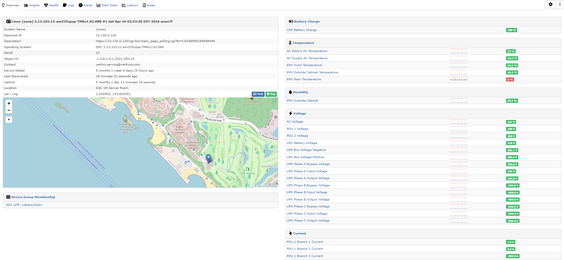 Testing confirms that the patch is working correctly. However, the unused UPS phase and PDU is displaying a negative value of -999V.