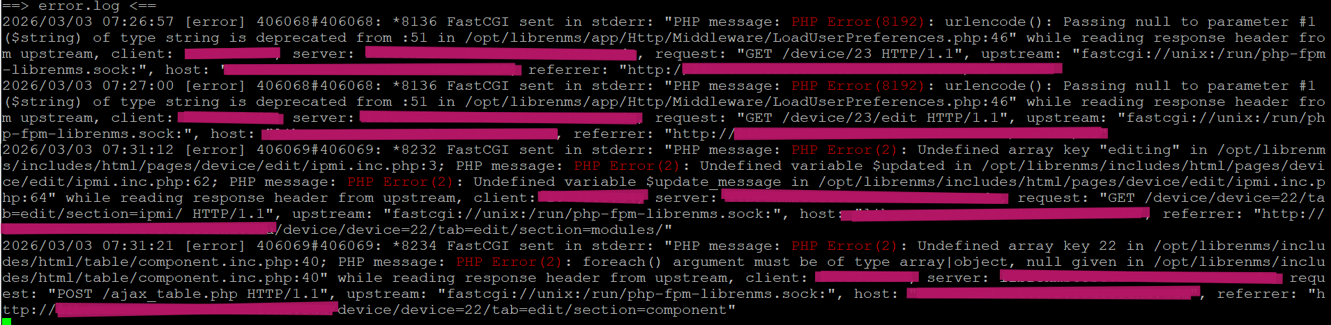 I’m not sure if it’s related to not generating the graphs. However, here’s a screenshot of nginx error.log (for security reason I’ve blocked out the client IP and address):